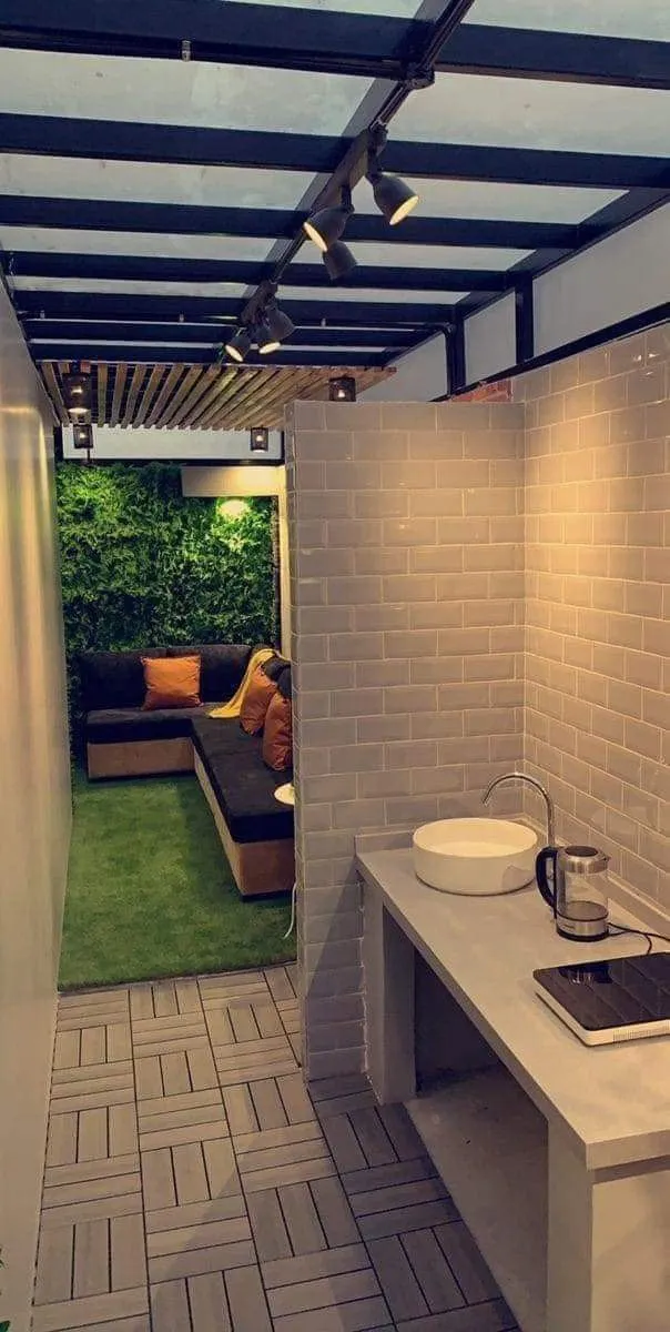 كما يتم دمج المظلات مع الديكور الخارجي.