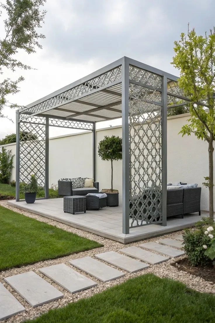 مظلات قص ليزر هي مظلات يتم تصنيعها باستخدام تقنية القص بالليزر، وهي تقنية متطورة تعتمد على أجهزة عالية الدقة لقص المعادن وفق تصاميم هندسية وزخرفية متناسقة. يتم تنفيذ هذه المظلات غالبًا من الحديد أو الألمنيوم أو الحديد المجلفن، ما يمنحها قوة ومتانة عالية مع مظهر جمالي مميز.