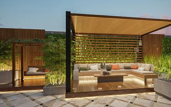 مع البرجولات المودرن وجلسات الحدائق المصمّمة بعناية، يمكنك الاستمتاع بأجواء مريحة في أي وقت من اليوم. أضف لمسات مثل: